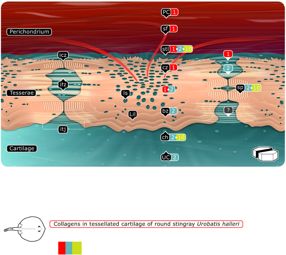Knorpelfische (Haie und Rochen) haben ein knorpeliges Skelett, welches – im Gegensatz zu den Vertebraten – zeitlebens knorpelig bleibt. Der knorpelige Kern des Skelets wird durch eine Schicht von mineralisierten Kacheln verstärkt, welche von einem straffen Bindegewebe umhüllt ist. Diese Architektur verleiht dem Skelett sowohl Steifheit als auch Elastizität und scheint die Grundlage zu sein, dass die Knorpelfische eine evolutionär überaus erfolgreiche Gruppe bilden.