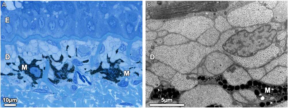 Knorpelfische sind meistens unauffällig gefärbt, jedoch zeichnen sich einige wenige Arten aus der Gruppe der Rochen durch blaue Punkte auf ihrer Rückenseite aus. Diese Farbe beruht nicht auf Pigmenten, sondern entsteht durch zellulärer Strukturen, die das Licht streuen. Man spricht daher von einer Strukturfarbe. Welche Strukturen dafür verantwortlich sind, wird zusammen mit der Universität Hong Kong und dem Max-Planck-Institut für Kolloid und Grenzflächenforschung (Potsdam) untersucht.