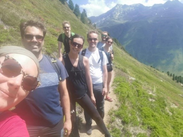 On the 17th of June, the whole team came packed up to the institute, as we were leaving to Obergurgl for our lab retreat. After enjoying an initial round of perfect Bavarian beer, we started with talks and workshops. As wonderful and informative as the presentations were, the beautiful weather tempted us to venture outside. We took advantage of it by going on a longer hike and admiring the breathtaking landscape.