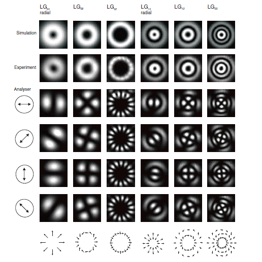 Fig. 1: Gallery of experimentally SLM-generated higher order Laguerre-Gaussian vector beams with locally linear polarization.