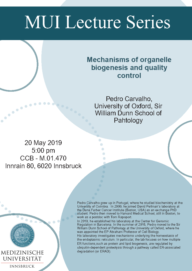 Mechanisms of organelle biogenesis and quality control Prof. Pedro Carvalho