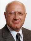 HERIBERT KONZETT (1958-1980) Der Name Konzett ist untrennbar verbunden mit Isoprenalin, das er als pharmakologisches Modell für die Charakterisierung des ß-Adrenozeptors beschrieb. Unter seiner Führung wurde das Pharmakologische Institut modernisiert, besonders im Hinblick auf die Biochemie. Konzett war 1965/66 Dekan der Medizinischen Fakultät und von 1973-1976 Senator der Universität Innsbruck. Seiner weisen Voraussicht ist es auch zu verdanken, daß Contergan, das später besonders in Deutschland zu einem mahnenden Beispiel ungeprüfter und überstürzter Markeinführung eines Pharmakons werden sollte, in Österreich nicht zugelassen wurde. Unter den Studenten galt H. Konzett als brillianter Vortragender und gefürchteter, aber gerechter Prüfer. H. Konzett emeritierte im Jahre 1980. Sein Lehrstuhl wurde auf Geheiß der damaligen Wissenschaftsministerin Hertha Firnberg (SPÖ) von „Pharmakologie“ in „Biochemische Pharmakologie“ umbenannt. Heribert Konzett ist am 4. November 2004 verstorben. Das Bild links zeigt H. Konzett (re) mit Dr. Hofmann, Entdecker des LSD, bei der Feier anlässlich des 60. Geburtstages von H. Glossmann. H. Konzett |