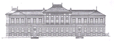 Ansicht des Institutsgebäudes „Alte Chemie“, Peter-Mayr-Str. 1/1a auf dem Originalentwurf von 1886, erreichtet 1886-88. Es beherbergte anfangs das Chemische Institut und trägt die Namen der Gründerväter der modernen Chemie auf der Apsis. In den Jahren 1982-1984 wurde das denkmalgeschützte Gebäude behutsam generalsaniert (Berufungszusage für H. Glossmann) und beherbergt seither das Institut für Biochemische Pharmakologie (in den Räumen des ehemaligen Pharmakologischen Institutes), das Institut für Pharmakologie, die Abteilung für Pharmakologie und Toxikologie des Institutes für Pharmazie und das Institut für Biochemie. |