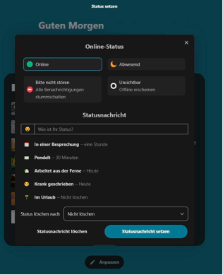 Mit Klick auf „Status setzen“ können Sie Ihren Anwesenheitsstatus individuell angeben.