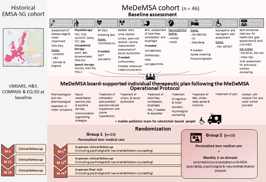 The MeDeMSA Care study presents a multidisciplinary, personalized care model, complemented by telemedicine and mobile palliative support. It truly takes a village to care for people with MSA — including neurologists, other medical specialists, physiotherapists, speech and occupational therapists, psychologists, pain and palliative care experts, and professionals in healthcare ethics and health technology assessment.