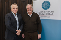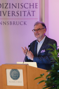 In seinen Grußworten dankte Brezinka den Mitgliedern für ihre Treue und dem ALUMN-I-MED Hauptsponsor der ersten Stunde, der Hypo Tirol Bank, für die jahrelange Unterstützung. Auch seinen drei Vorgängern im Amt des Präsidenten, Raimund Margreiter, Thomas Luger und Gründungsrektor Hans Grunicke sprach Brezinka seinen persönlichen Dank aus.  Rektor Wolfgang Fleischhacker, der mit seiner Amtsübernahme am 1. Oktober 2017 auch Mitglied im ALUMN-I-MED Vorstand geworden ist, gratulierte anschließend der Absolvent:innenorganisation zu ihrem Engagement in den vergangenen Jahren.