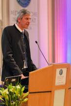 Für Wolfgang Fleischhacker war es der erste Neujahrsempfang als Rektor der Medizinischen Universität Innsbruck. Seit 1. Oktober 2017 leitet Fleischhacker die Medizinische Universität Innsbruck gemeinsam mit seinem Rektoratsteam. In seiner kurzen Rede betonte Rektor Fleischhacker, wie wichtig kollegiale Zusammenkünfte sind. „Das große Interesse am diesjährigen Neujahrsempfang zeigt auch die Aufbruchstimmung an der Medizinischen Universität Innsbruck“, erklärte Fleischhacker. „Mein Ziel ist es, Talente und Schwerpunkte zu fördern und unterstützende Strukturen zu stärken. Daran arbeiten wir im Rektoratsteam.“ Zusammen mit Rektor Fleischhacker führte Christoph Brezinka durch das Programm, der ehemalige ALUMN-I-MED Vizepräsident war im Sommer 2017 zum Vorsitzenden der Absolvent:innenorganisation der Medizinischen Universität Innsbruck gewählt worden.