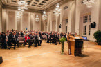 Rektor W. Wolfgang Fleischhacker und ALUMN-I-MED Präsident Christoph Brezinka luden gemeinsam zum traditionellen Neujahrsempfang. Rund 200 Ehrengäste, Mitarbeiter:innen, Absolvent:innen, Studierende sowie Förder:innen nahmen in der Aula der Universität Platz und nutzten die Gelegenheit zum gegenseitigen Austausch.