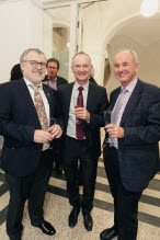 Im Rahmen des Neujahrsempfangs stellten sich Ute Marie Ganswindt (Strahlentherapie-Radioonkologie), Ralf Geiger (Pädiatrie II) und Thomas Müller (Pädiatrie I) als neu berufene Professor:innen vor. Traditionell wurden auch wieder die Professor:innen, die im vergangenen Jahr pensioniert wurden, verabschiedet. Peter Lukas (Strahlentherapie-Radioonkologie), Alois Saria (Experimentelle Psychiatrie), Robert Zangerle (Dermatologie, Venerologie und Allergologie) nutzten die Gelegenheit.