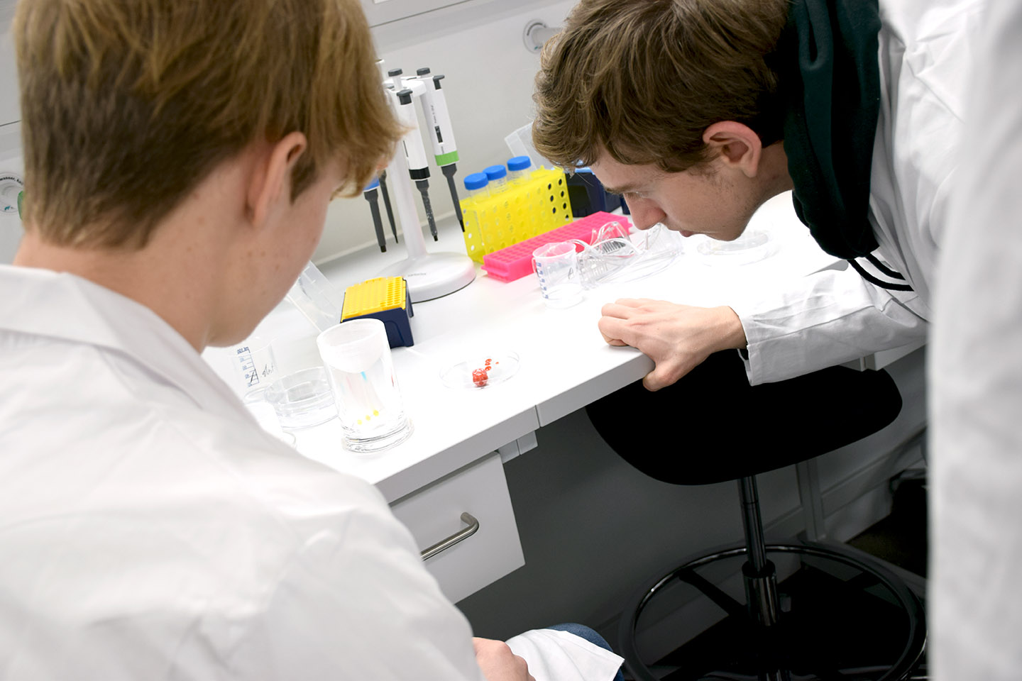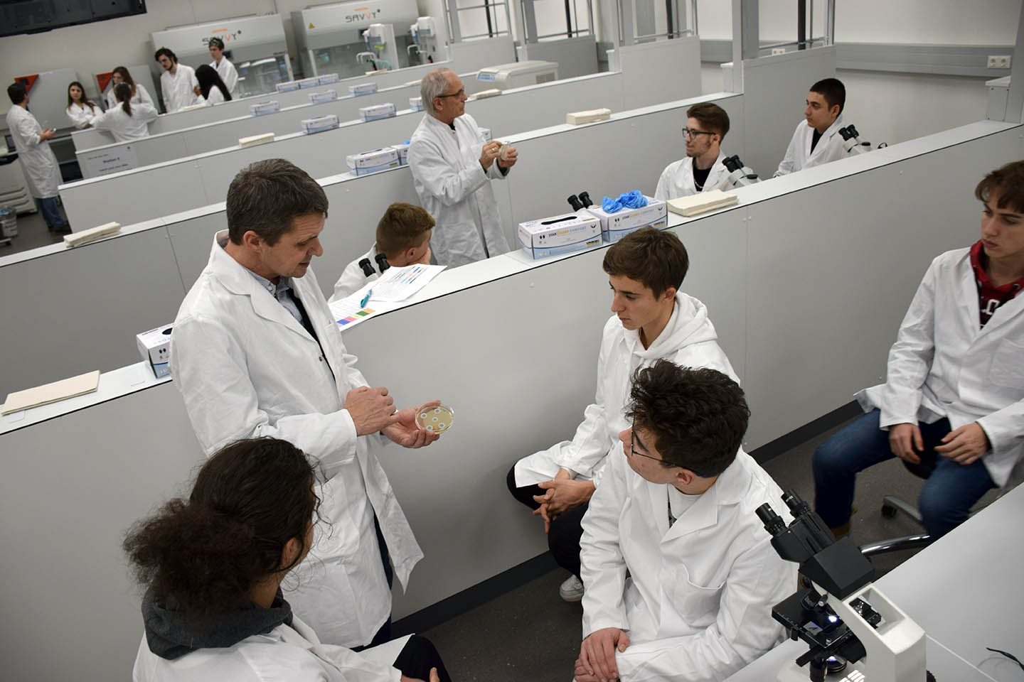 Im Rahmen der „Open Labs Days“ besuchen die Schüler:innen jeweils an zwei Vormittagen Vorträge und Einführungen im neuen Audimax, bevor sie dann an Experimenten in den modernen Ausbildungslaboren im neuen Lehr- und Lerngebäude in der Fritz-Pregl-Straße 3 teilnahmen. An acht verschiedenen Stationen konnte erlernt werden, wie beispielsweise die eigene DNA präpariert wird oder wie Moleküle aufgetrennt werden. Zudem gab es viele praktische Einblicke in die spannende Welt von Zellkulturen, Bakterien und Schimmelpilzen.