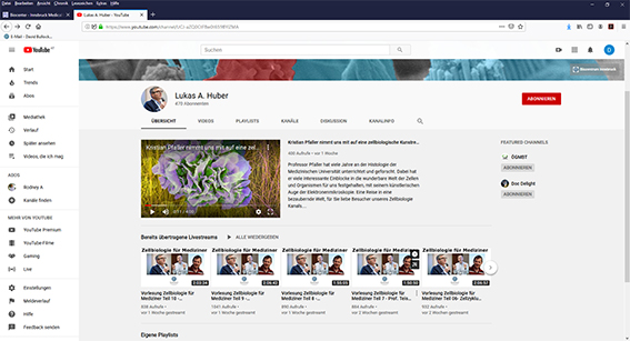 Diese Erfahrung hat auch Lukas Huber, Leiter des Instituts für Zellbiologie an der Medizin Uni Innsbruck, gemacht. Gemeinsam mit David Teis, ebenfalls vom Institut für Zellbiologie und Michael Hess vom Institut für Histologie und Embryologie, wird eine Zellbiologie-Online-Vorlesung für Studierende der Humanmedizin angeboten. Allerdings verwenden die drei Lehrenden dabei mit Youtube ein anderes, durchaus bekanntes und populäres Medium. Der Youtube-Kanal von Lukas Huber ist öffentlich jederzeit zugänglich. So wird dieses Angebot auch von zahlreichen externen Zuhörer:innen genutzt. „Die Resonanz ist enorm und wir haben insgesamt bereits über 15.000 Zugriffe auf den Kanal“, zeigt sich der Mediziner und Zellbiologe Huber von dieser neuen Erfahrung beeindruckt. Aber auch er musste zu Beginn die neue Art des Lehrens erlernen. Mittlerweile begeistert der Live-Stream nicht nur ihn, sondern vor allem seine Studierenden: „Diese Generation hat offenbar einen völlig anderen Zugang zu Online-Medien und dieser Art der Kommunikation“, meint Huber. Die Interaktion der Studierenden sei dabei von mehr Aktivität als bei einer analogen Vorlesung geprägt.