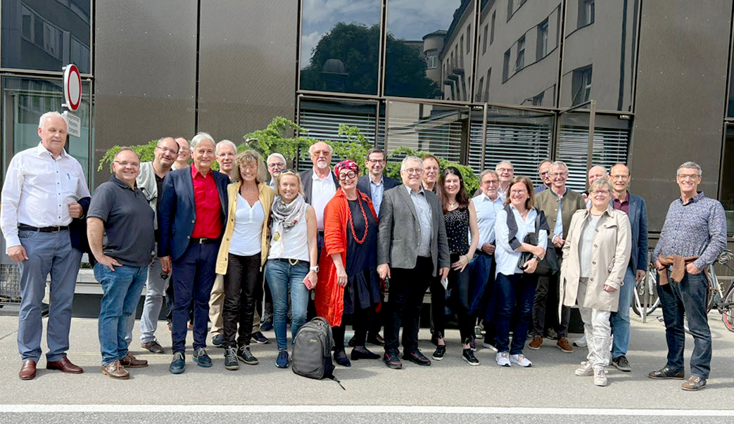 Nach dem Mittagessen in der Mensa der tirol kliniken bei dem die Gäste von Geschäftsführer Stefan Deflorian willkommen geheißen wurden, schnupperten die „Alt-Fachschaftler“ im wieder den Geruch der Vergangenheit, im wahrsten Sinne des Wortes: Denn nach einem Verdauungsspaziergang auf dem Klinikgelände versammelten sie sich im einzigen unveränderten Hörsaal, jenem der Psychiatrie, wo Hans Grunicke über die Entwicklung der Medizinischen Fakultät der 1960er Jahre hin zur Medizinischen Universität von heute referierte. Bei einem geselligen Abendessen im Gasthaus Bierstindl ließen die Teilnehmer:innen des „Altfachschaftler“-Treffens den Abend ausklingen.