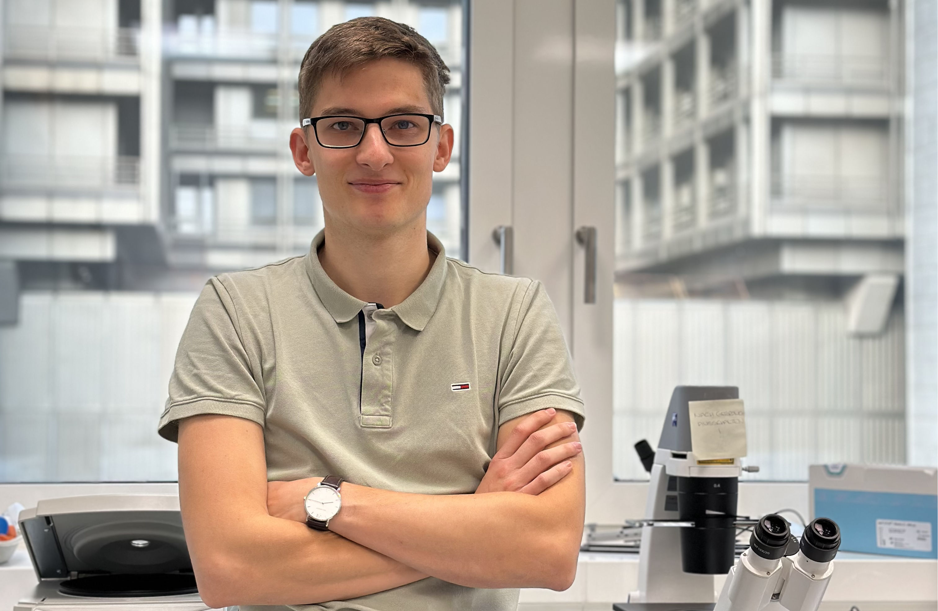 Manuel Grander forscht im Bereich Eisenstoffwechsel und Infektiologie. Schon seit 2018 ist er dafür im Innsbrucker Christian-Doppler-Labor für Eisenmetabolismus und Anämieforschung von Günter Weiss tätig. Nach der Diplomarbeit verfasst er nun auch seit einem Jahr seine Dissertation dort. Dabei untersucht er ein Eisenchaperon, das heißt ein Protein, das Eisen direkt bindet und innerhalb der Zelle transportiert. Erreger, wie zum Beispiel Salmonellen oder Listerien, sind auf eine ausreichende Eisenzufuhr für ihr Wachstum angewiesen. Welchen Einfluss Eisenchaperone in deren Immunabwehr haben, ist jedoch noch größtenteils unbekannt.  Daran möchte Grander auch in Zukunft forschen und mit neuen Erkenntnissen einen Beitrag zu deren Verständnis liefern.