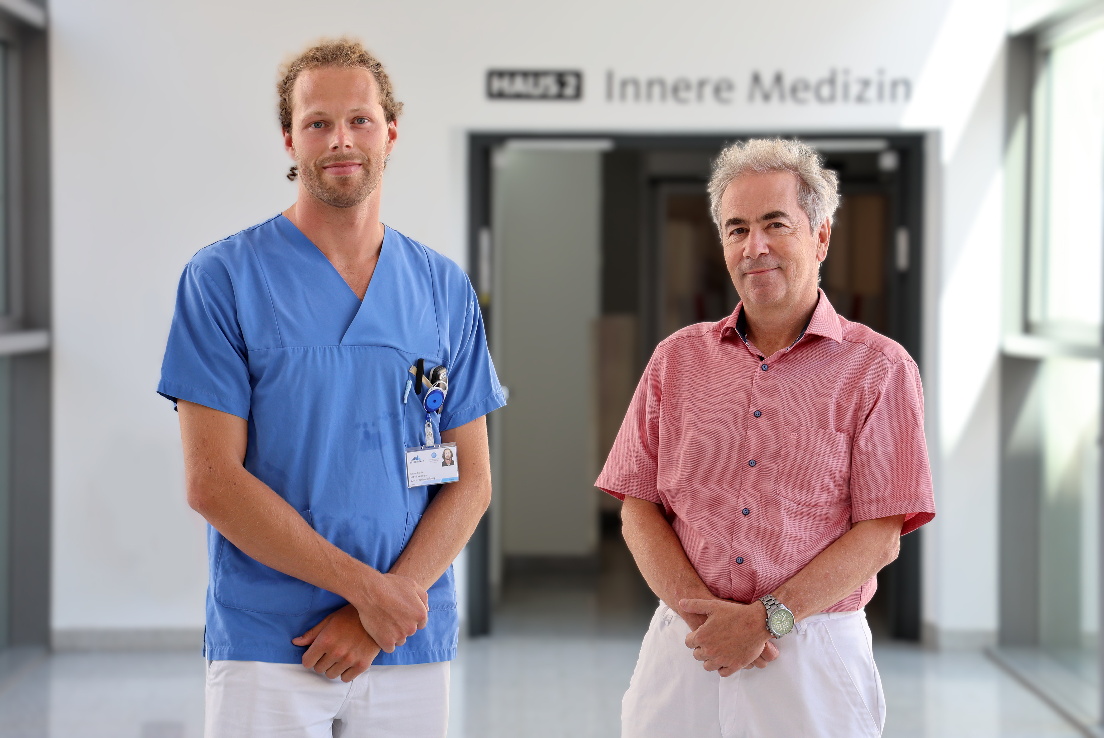 Haben den Eisenstoffwechsel und die Immunaktivität gabunischer Kinder im Blick: Wolfram Mayr (l.) und Klinik-Direktor Günter Weiss. ©MUI/D. Bullock