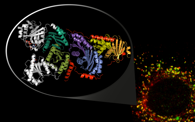 We aim to understand the disease mechanisms of neurofibromatosis type 1 (NF1), a genetic disease with a relatively high incidence. NF1 patients have an increased risk of tumour, present a variety of developmental defects and frequently suffer from learning disabilities. Tumour-suppressor gene NF1 encodes the giant protein neurofibromin (320 kDa) and is not functional in NF1 patients, owing to genetic alterations. Our long-term goal is to define the functional spectrum of neurofibromin in as much detail as possible  Our research activities currently include determining the structure of neurofibromin (FWF grant: P28975) as well as defining its interacting partners (Dunzendorfer-Matt et al., 2016, PNAS 113, 7497 – 7502) (collaborations with Frank McCormick from UCSF and Lukas A. Huber in Innsbruck). In addition, we investigate the interactions between components of cellular complexes that are important for lysosomal function (collaboration with AG Huber; Araujo et al., 2017, Science 358, 377 – 381). We have continued to expand our platform of biophysical instruments by implementing a multi-angle light-scattering (MALS) system that is capable of accurately determining the molecular weight and levels of microheterogeneity of multicomponent complexes.