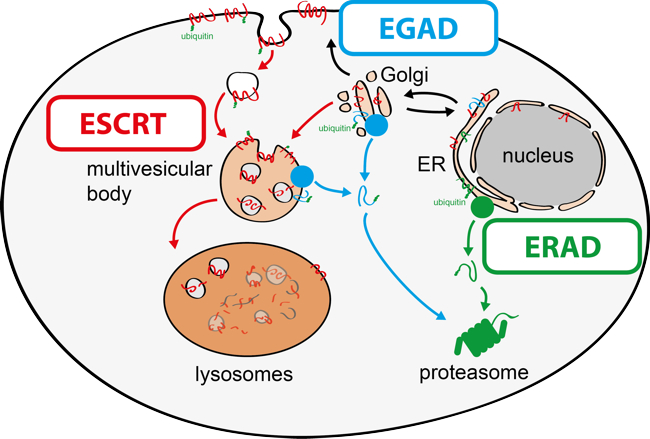- Endosome and Golgi-associated degradation (EGAD) of membrane proteins regulates sphingolipid metabolism. Schmidt O, Weyer Y, Baumann V, Widerin MA, Eising S, Angelova M, Schleiffer A, Kremser L, Lindner H, Peter M, Fröhlich F, Teis D. EMBO J. 2019 Aug 1;38(15):e101433. doi: 10.15252/embj.2018101433. Epub 2019 May 27. PMID: 31368600