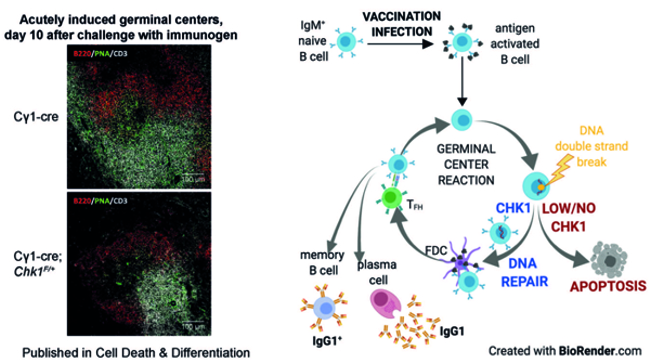 • DNA damage-signalling in B cells – Through fine-tuning of CHK1 dose, antigen-activated B cells exert control over the DNA damage response (Fig. 4).