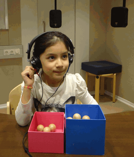 - Assessing the auditory performance (e.g. speech understanding, sound source localisation) of patients with hearing implants or hearing aids.