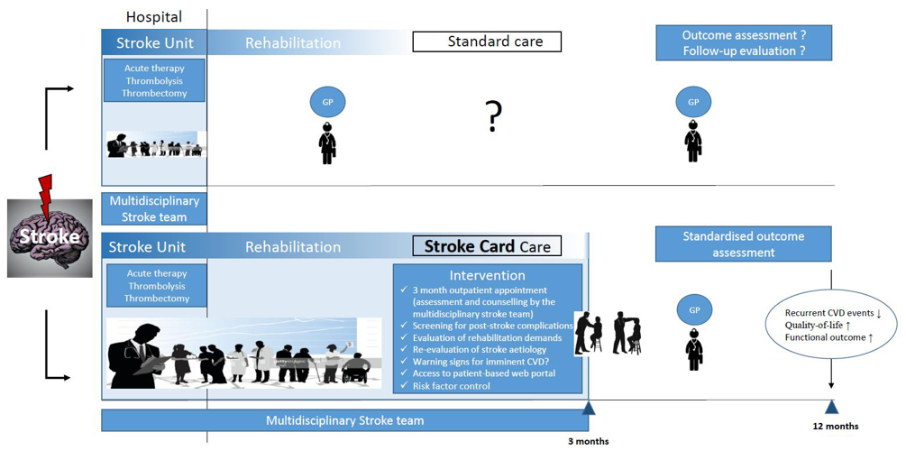 - Willeit P, Toell T, Boehme C, Krebs S, Mayer L, Lang C, Seekircher L, Tschiderer L, Willeit K, Rumpold G, Schoenherr G, Griesmacher A, Ferrari J, Knoflach M, Lang W, Kiechl S, Willeit J: STROKE-CARD care to prevent cardiovascular events and improve quality of life after acute ischaemic stroke or TIA: A randomised clinical trial. EClinicalMedicine. 2020 Jul 28;25:100476. doi: 10.1016/j.eclinm.2020.100476