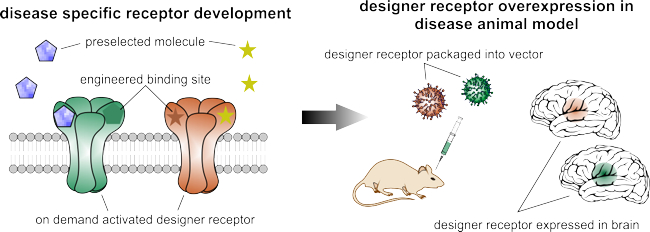Multiple gene therapy options targeting Parkinson’s disease or refractory epilepsy have already been explored. However, all of them are limited by specific disadvantages, which we aim to overcome through disease-specific engineering of designer receptors.