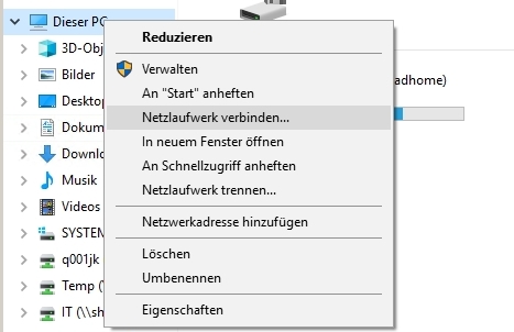 Manuelle Verbindung der Laufwerke auf dem Windows PC